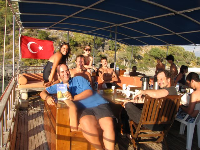 Its the second week in september, for the last twenty years it has meant the start of a new school year. But here were are the deck of a boat in the Med. enjoying the sunshine. You can't help feeling guilty being on a holiday so soon after school starts but to be honest that guilt lasted about .653 seconds and then it dissolved in the surrounding beauty of the turkish coast line.The Turkish experience is fabulous, the people are great, the country is stunning and its clean!